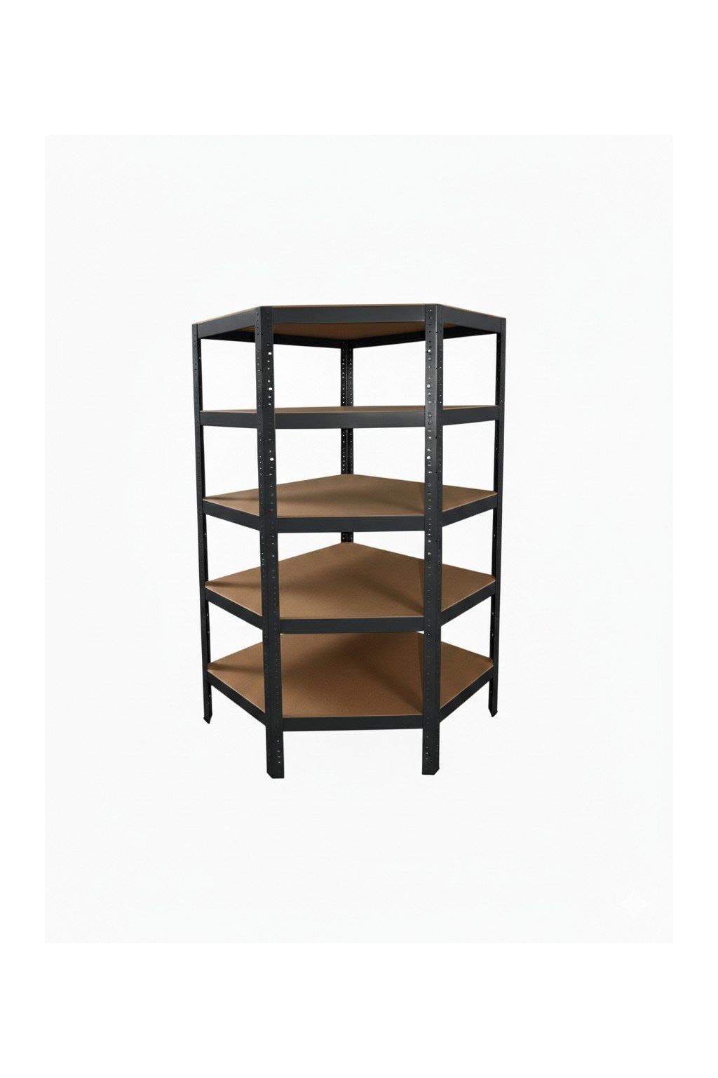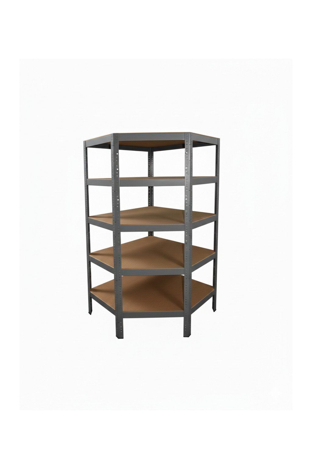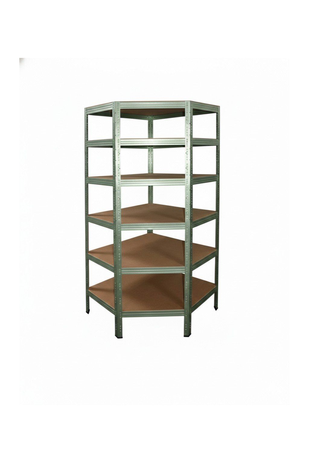 Rohový kovový regál z radu dielenských regálov s vyššou nosnosťou je bezskrutkový a elegantne rieši skladovanie v rohoch. Úložná plocha police 89x59x42 cm.